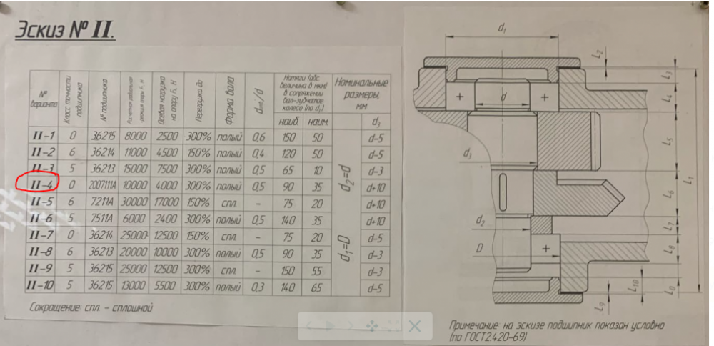Исходные данные: Эскиз II, вариант 4 Класс точности подшипника – 0 № подшипника: 2007111 Расчетная радиальная реакция опоры Fr=10000H Осевая нагрузка на опору Fa=4000H Перегрузка до 300% Форма вала – полый dотв/d=0,5 Натяги в сопряжении вал - зубчатое колесо (по d3): Nmax=90 мкм Nmin=35 мкм Номинальные размеры: d1=D, d2=d, d3=d+10;