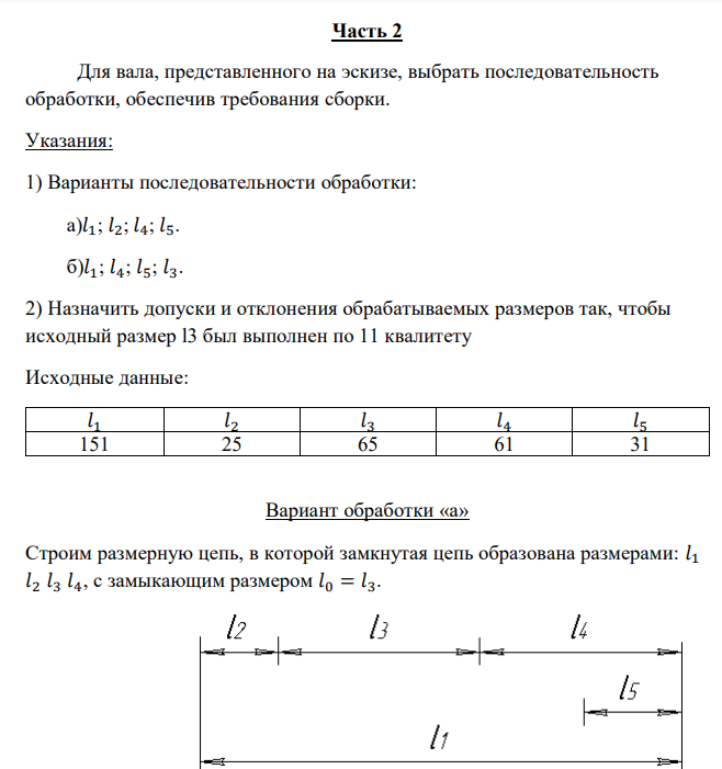Часть 2 Для вала, представленного на эскизе, выбрать последовательность обработки, обеспечив требования сборки