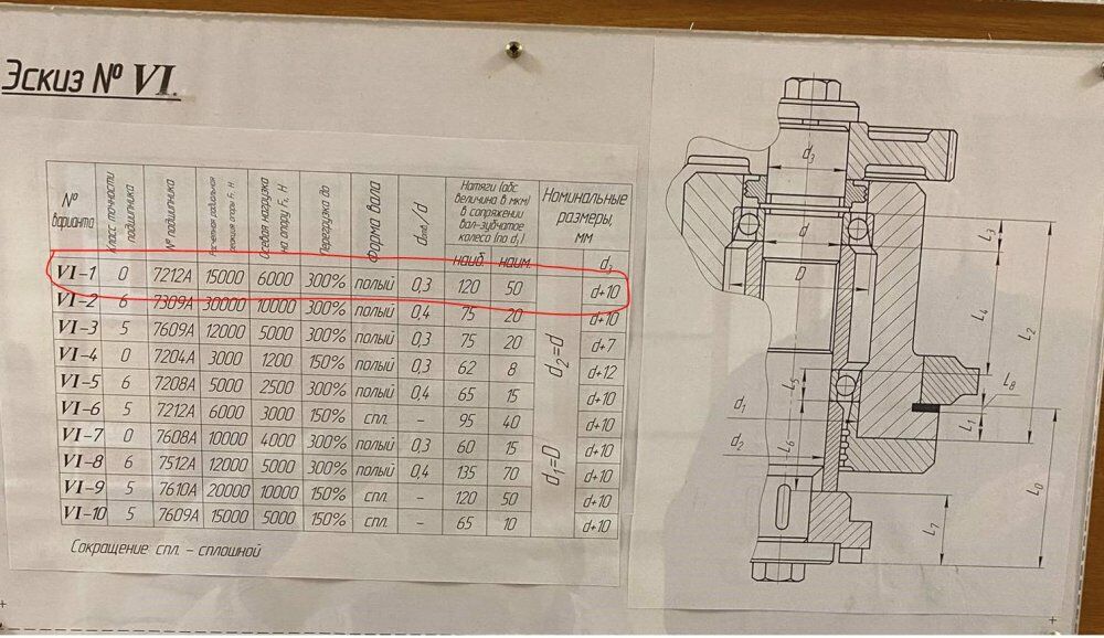 1. Выбрать посадки для соединений: а. внутреннего кольца подшипника с валом (по d); б. наружного кольца подшипника с корпусом (по D); в. крышки с корпусом (по d1) г. распорной втулки (по d2) д. вала с зубчатым колесом (по d3)