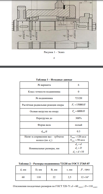 Задание:1. Выбрать посадки для соединений: а. внутреннего кольца подшипника с валом (по d); б. наружного кольца подшипника с корпусом (по D); в. крышки с корпусом (по d1) г. распорной втулки (по d2) д. вала с зубчатым колесом (по d3)