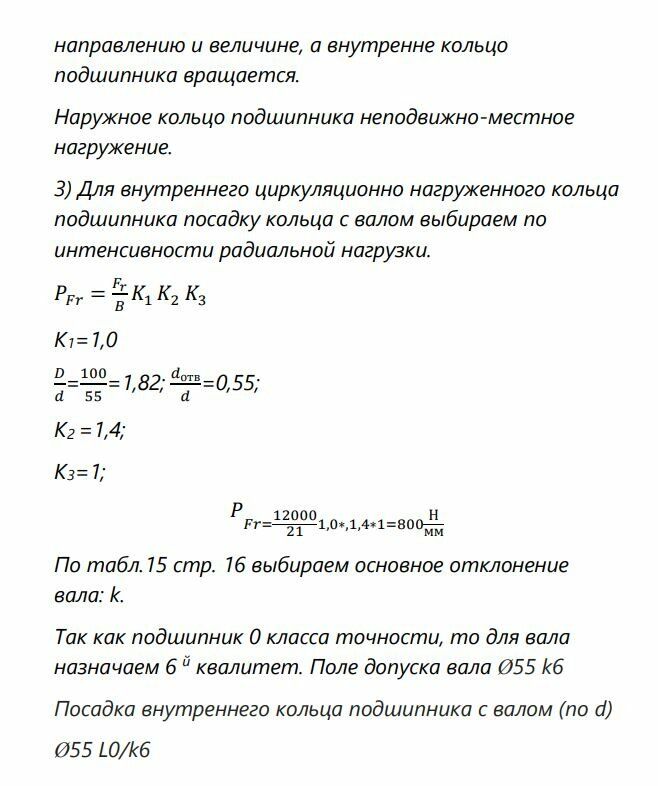 Форма вала: сплошной. Натяги (абсолютные величины в мкм) в сопряжении вал-зубчатое колесо (по d3)