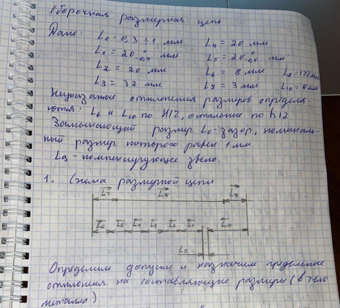 Для студентов МГТУ им. Н.Э.Баумана по предмету Метрология, стандартизация и сертификация (МСиС)Сборочная размерная цепь + Подетальная размерная цепьСборочная размерная цепь + Подетальная размерная цепь