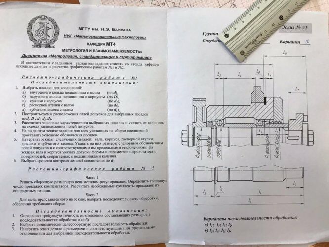 Для студентов МГТУ им. Н.Э.Баумана по предмету Метрология, стандартизация и сертификация (МСиС)Сборочная размерная цепь + Подетальная размерная цепьСборочная размерная цепь + Подетальная размерная цепь