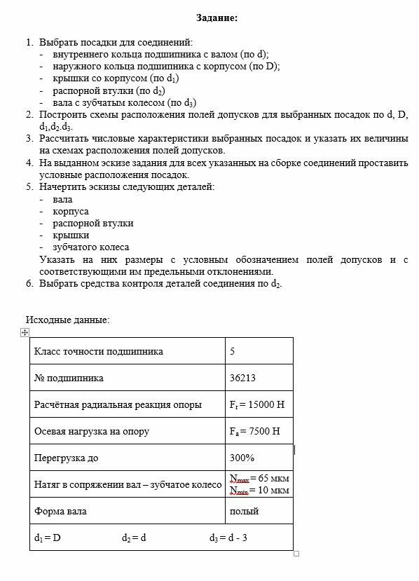 Натяг в сопряжении вал – зубчатое колесо | Nmax= 65 мкм Nmin= 10 мкм | ||