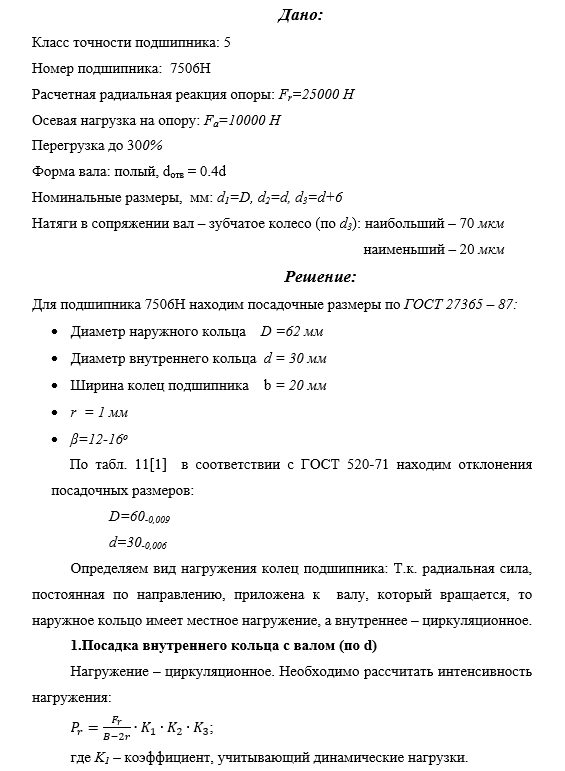 Расчетная радиальная реакция опоры: Fr=25000 H