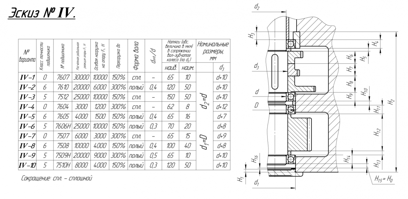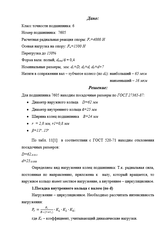 Натяги в сопряжении вал – зубчатое колесо (по d3): наибольший – 65 мкм
