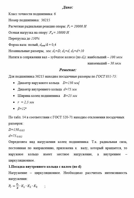 Натяги в сопряжении вал – зубчатое колесо (по d3): наибольший – 100 мкм