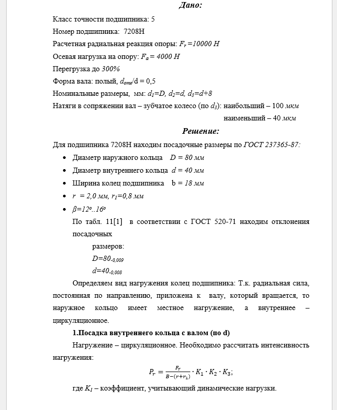 Расчетная радиальная реакция опоры: Fr =10000 H