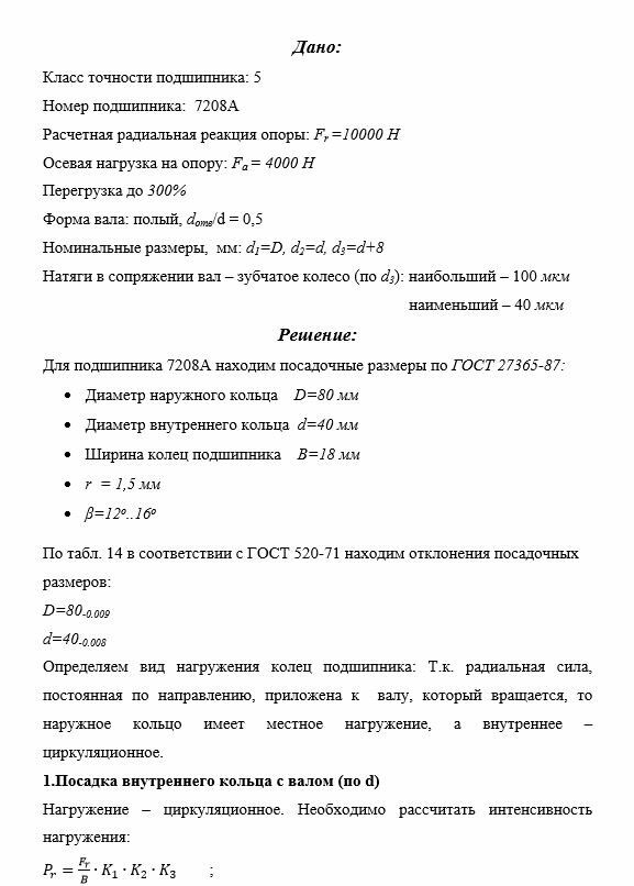 Расчетная радиальная реакция опоры: Fr=10000 H