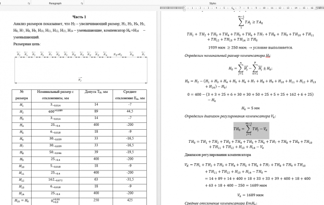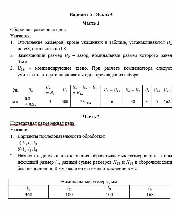 Вариант 5 – ДЗ №2 – Эскиз №4 - Подетальная размерная цепь