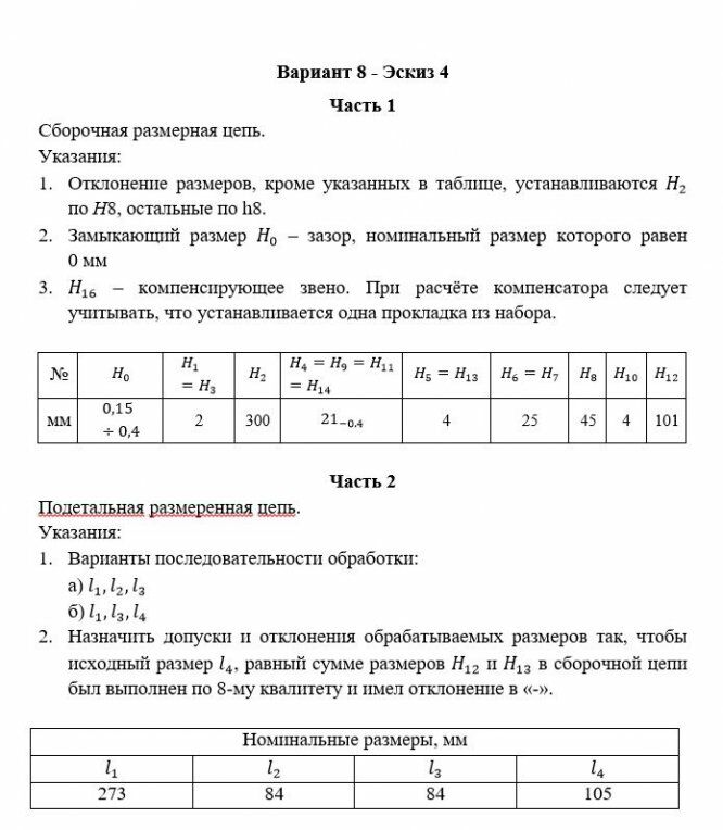 ДЗ 2: Сборочная размерная цепь + Подетальная размерная цепь вариант 8