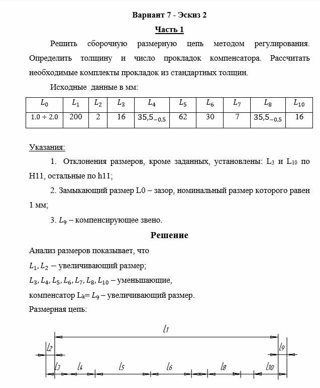 Вариант 7 – ДЗ №2 – Эскиз №2 - Подетальная размерная цепь