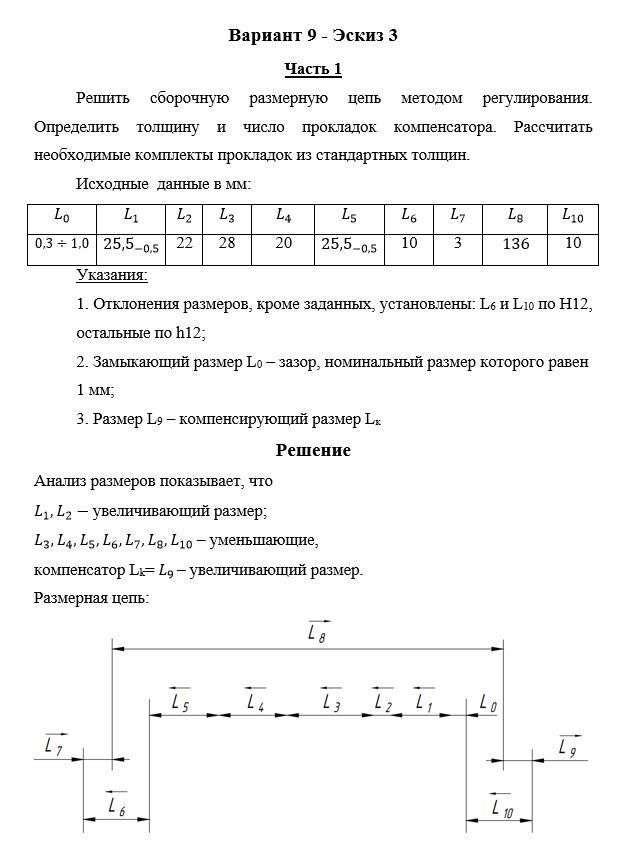 ДЗ 2: Сборочная размерная цепь + Подетальная размерная цепь вариант 9