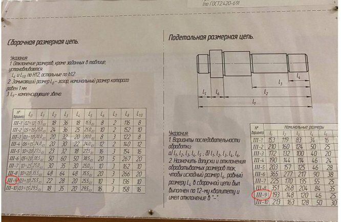 Вариант 9 – ДЗ №2 – Эскиз №3 - Подетальная размерная цепь
