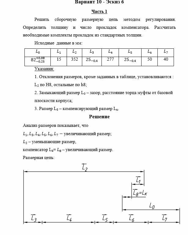 ДЗ 2: Сборочная размерная цепь + Подетальная размерная цепь вариант 10