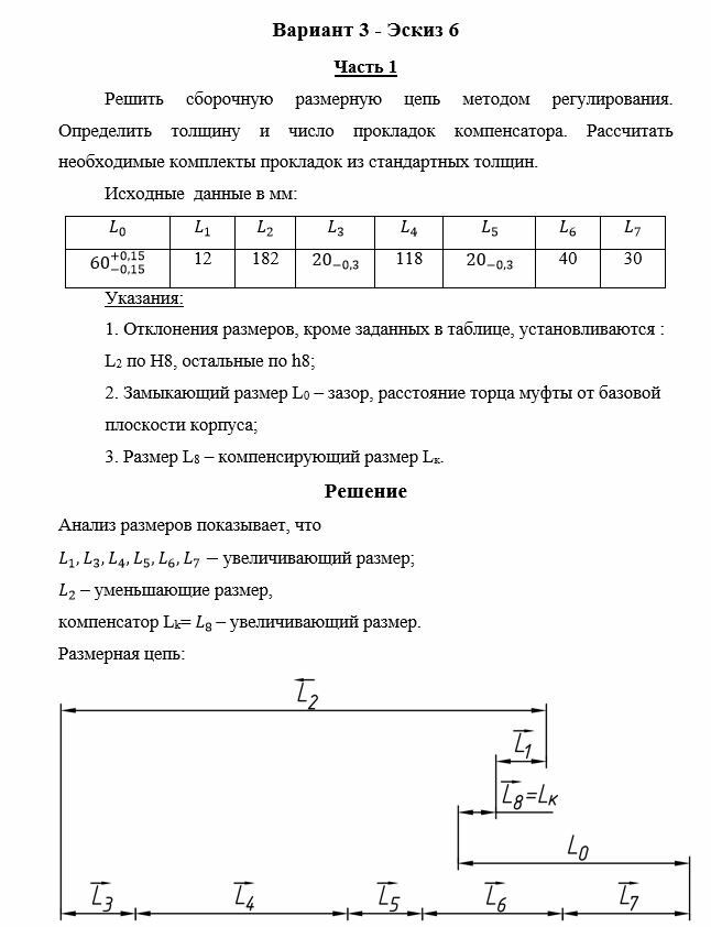 ДЗ 2: Сборочная размерная цепь + Подетальная размерная цепь вариант 3