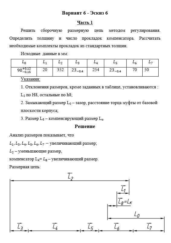 ДЗ 2: Сборочная размерная цепь + Подетальная размерная цепь вариант 6