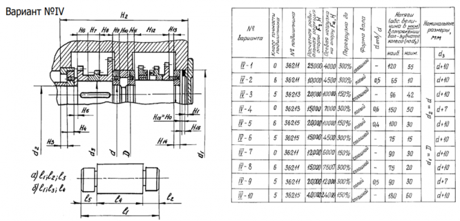 Подшипник шариковый радиально-упорный однорядный 36211, 5 класса точности, вращается вал, радиальная сила приложена к валу, ее реакция в подшипнике равна FR = 20000 Н, осевая нагрузка на опору FA = 12000 Н, нагрузка с сильными ударами и вибрацией: перегрузка до 300 %. Вал полый dотв/d=0.5. Внутреннее кольцо удерживается от осевых смещений втулкой, наружное кольцо – выступом крышки подшипника, входящим в корпус. Корпус неразъемный, крышка глухая.