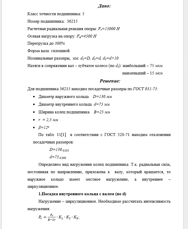 Натяги в сопряжении вал – зубчатое колесо (по d3): наибольший – 75 мкм