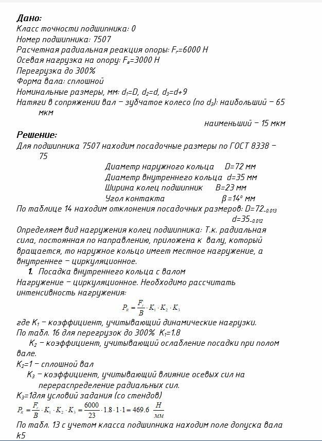Расчетная радиальная реакция опоры: Fr=6000 H