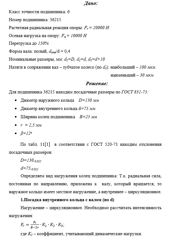 Расчетная радиальная реакция опоры: Fr= 20000 H