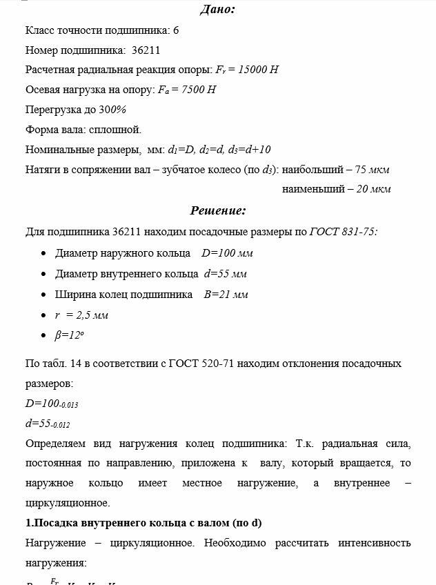 Натяги в сопряжении вал – зубчатое колесо (по d3): наибольший – 75 мкм