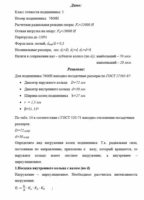 Расчетная радиальная реакция опоры: Fr=25000 H