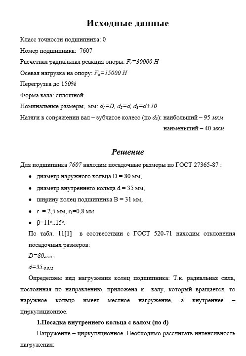 Расчетная радиальная реакция опоры: Fr=30000 H