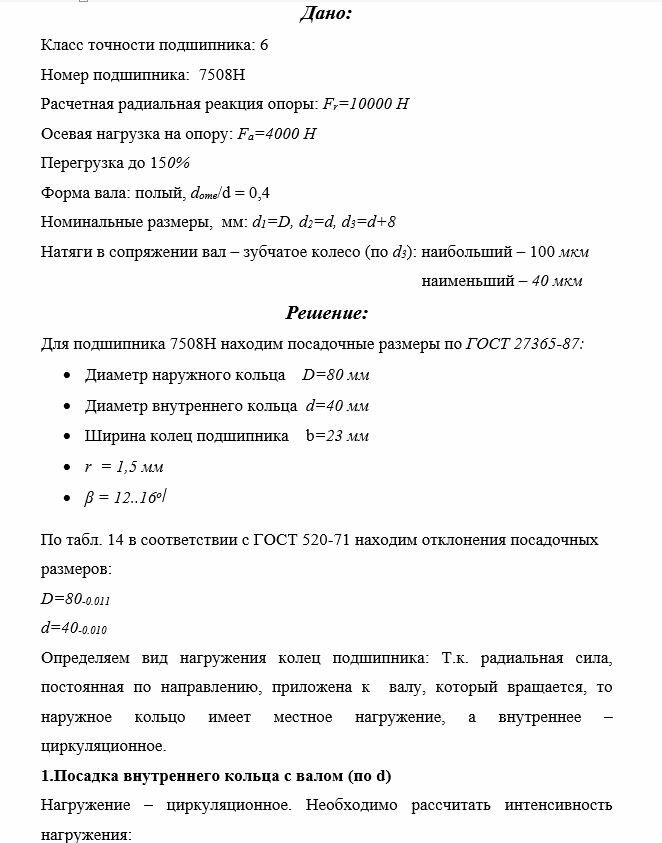 Натяги в сопряжении вал – зубчатое колесо (по d3): наибольший – 100 мкм