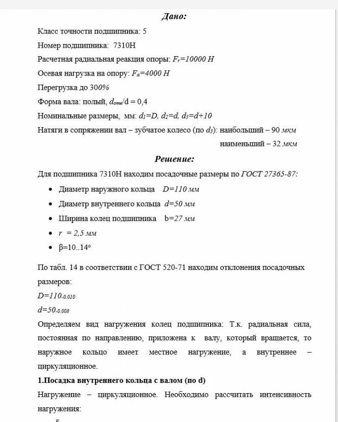 Расчетная радиальная реакция опоры: Fr=10000 H