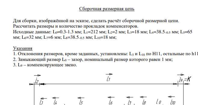 Для студентов МГТУ им. Н.Э.Баумана по предмету Метрология, стандартизация и сертификация (МСиС)Сборочная размерная цепь + Подетальная размерная цепьСборочная размерная цепь + Подетальная размерная цепь