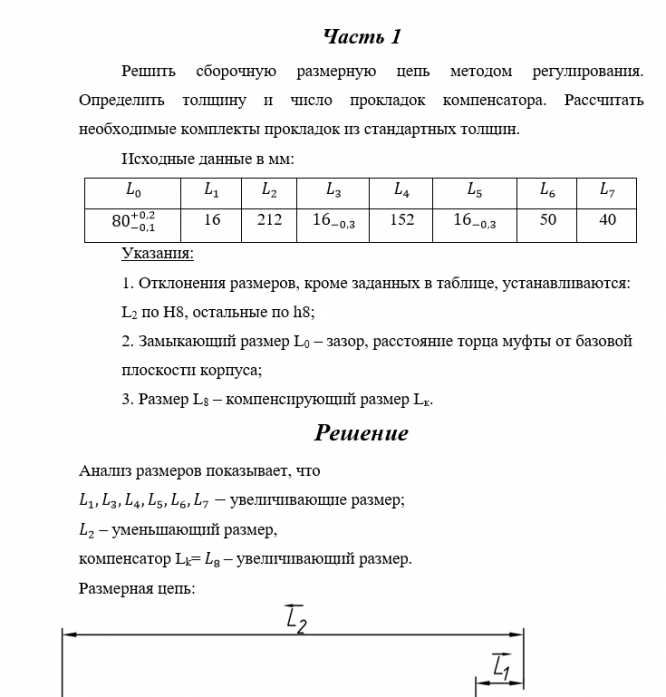 Для студентов МГТУ им. Н.Э.Баумана по предмету Метрология, стандартизация и сертификация (МСиС)Сборочная размерная цепь + Подетальная размерная цепьСборочная размерная цепь + Подетальная размерная цепь