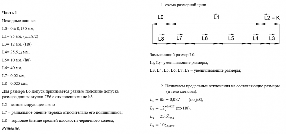 Для студентов МГТУ им. Н.Э.Баумана по предмету Метрология, стандартизация и сертификация (МСиС)Сборочная размерная цепь + Подетальная размерная цепьСборочная размерная цепь + Подетальная размерная цепь