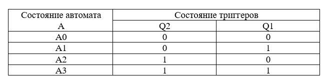 1. Определить требуемое количество триггеров и провести кодирование внутренних состояний автомата.