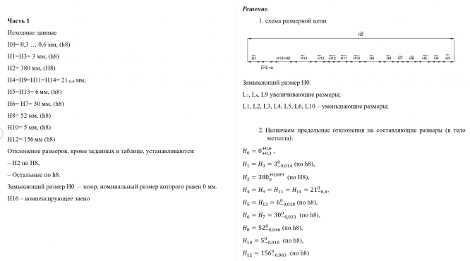 Для студентов МГТУ им. Н.Э.Баумана по предмету Метрология, стандартизация и сертификация (МСиС)Сборочная размерная цепь + Подетальная размерная цепьСборочная размерная цепь + Подетальная размерная цепь