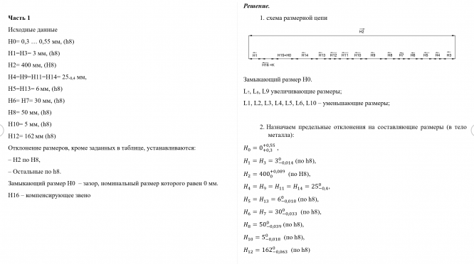 Для студентов МГТУ им. Н.Э.Баумана по предмету Метрология, стандартизация и сертификация (МСиС)Сборочная размерная цепь + Подетальная размерная цепьСборочная размерная цепь + Подетальная размерная цепь