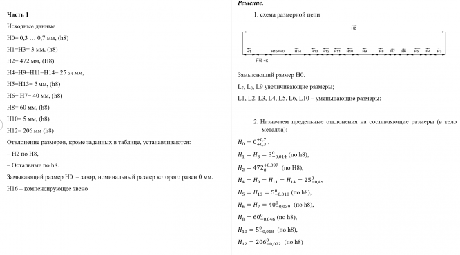 Для студентов МГТУ им. Н.Э.Баумана по предмету Метрология, стандартизация и сертификация (МСиС)Сборочная размерная цепь + Подетальная размерная цепьСборочная размерная цепь + Подетальная размерная цепь