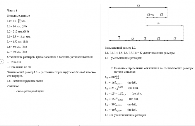 Для студентов МГТУ им. Н.Э.Баумана по предмету Метрология, стандартизация и сертификация (МСиС)Сборочная размерная цепь + Подетальная размерная цепьСборочная размерная цепь + Подетальная размерная цепь
