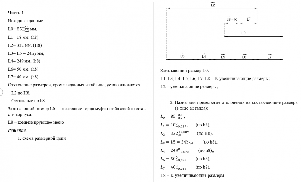 Для студентов МГТУ им. Н.Э.Баумана по предмету Метрология, стандартизация и сертификация (МСиС)Сборочная размерная цепь + Подетальная размерная цепьСборочная размерная цепь + Подетальная размерная цепь