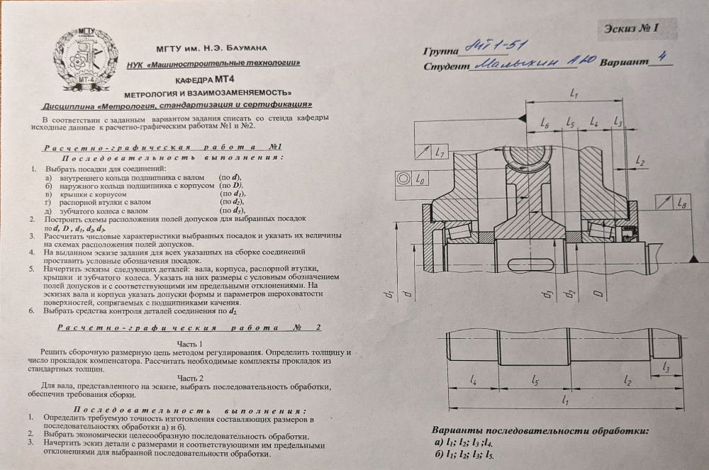 Для студентов МГТУ им. Н.Э.Баумана по предмету Метрология, стандартизация и сертификация (МСиС)Сборочная размерная цепь + Подетальная размерная цепьСборочная размерная цепь + Подетальная размерная цепь