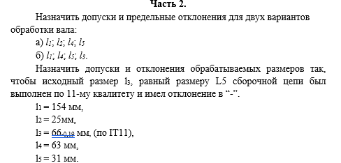 - Определить требуемую точность изготовления составляющих размеров в последовательностях обработки а) l1; l2; l4; l5 и б) l1; l4; l5; l3.