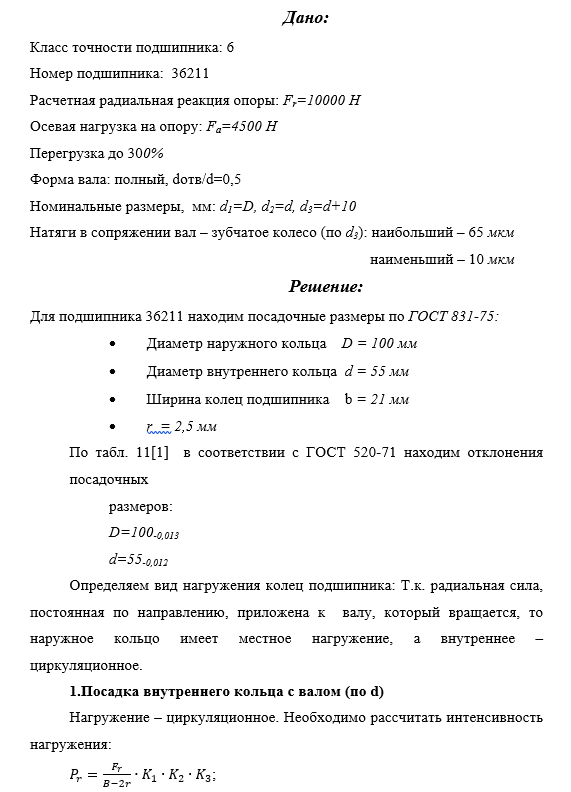 Натяги в сопряжении вал – зубчатое колесо (по d3): наибольший – 65 мкм