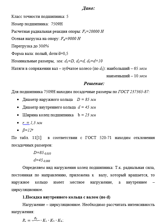 Расчетная радиальная реакция опоры: Fr=20000 H