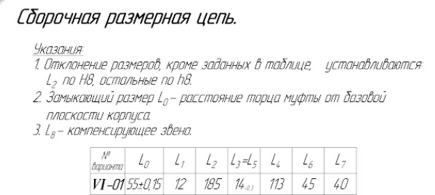 Для студентов МГТУ им. Н.Э.Баумана по предмету Метрология, стандартизация и сертификация (МСиС)Сборочная размерная цепь + Подетальная размерная цепьСборочная размерная цепь + Подетальная размерная цепь