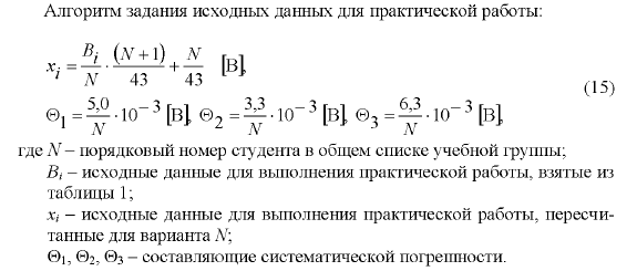 Показать/скрыть дополнительное описаниеПрактическая работа 1. Прямые измерения с многократными наблюдениями Проведено измерение ЭДС с помощью потенциометра постоянного тока. Результаты наблюдений приведены в таблице 1. Определите результат измерения напряжения. Уровень значимости q принять равным 0,01. Критерий Граббса. Нулевая и альтернативная гипотезы. Систематические погрешности. Критерий Аббе. Проверка гипотезы о том, что результаты наблюдений принадлежат нормальному распределению. Вычисление доверительных границ случайной погрешности. Вычисление доверительных границ неисключенной систематической погрешности (НСП). Вычисление доверительных границ погрешности результата измерения.