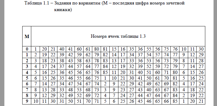 Вариант определяется по двум последним цифрам зачётной книжки (М – последняя, L – предпоследняя цифра в номере зачетной книжки)