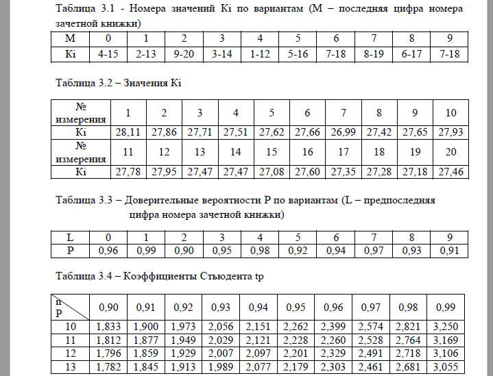 Задание 3. Обработка результатов многократных измерений На фиксированной частоте производятся прямые измерения коэффициента усиления К партии из n усилителей. Считая, что случайные погрешности имеют нормальный закон распределения, определить на основании заданного количества измерений (таблицы 3.1 и 3.2):