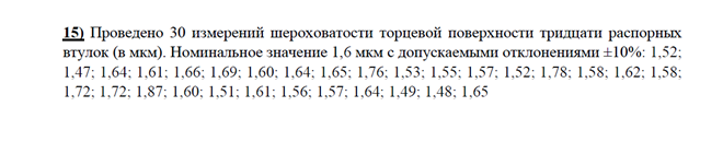 Лабораторная работа 30: Статистический контроль качества продукции по количественному признаку вариант 15
