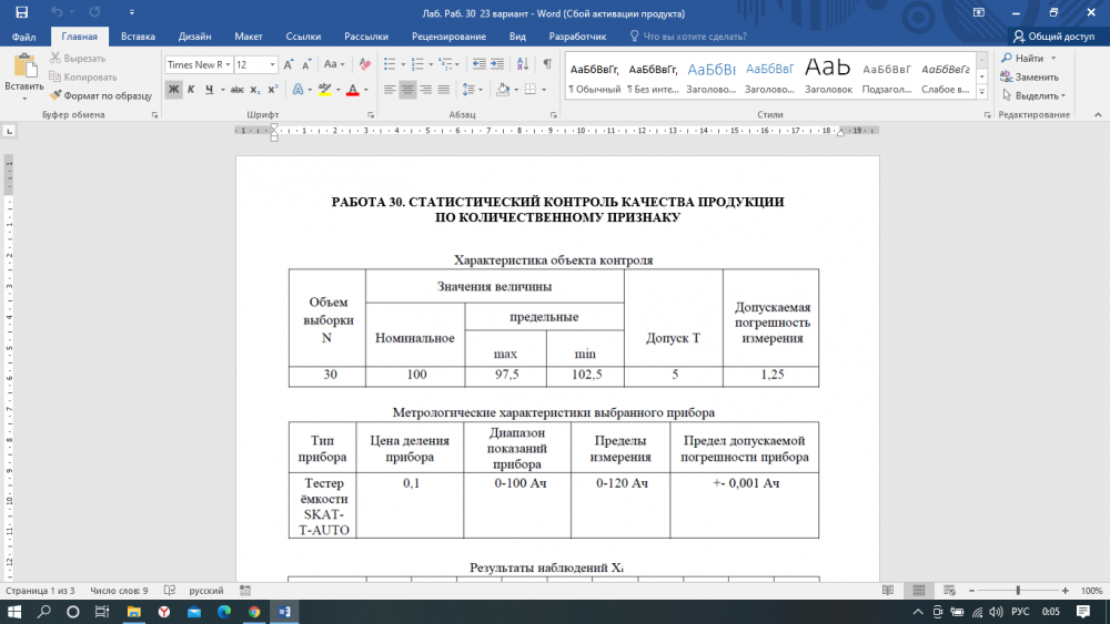 Лабораторная работа 30: Статистический контроль качества продукции по количественному признаку вариант 23