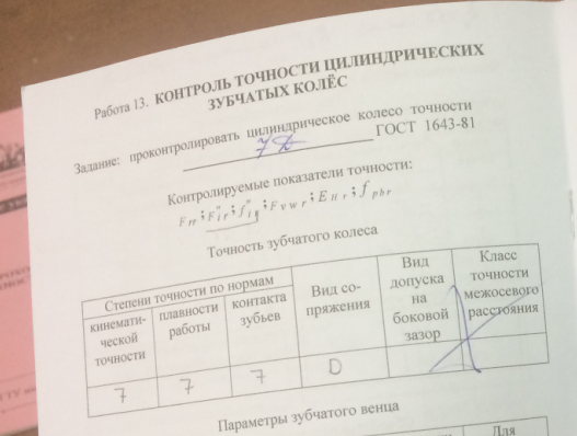 Лабораторная работа 13: Контроль точности цилиндрических зубчатых колес
